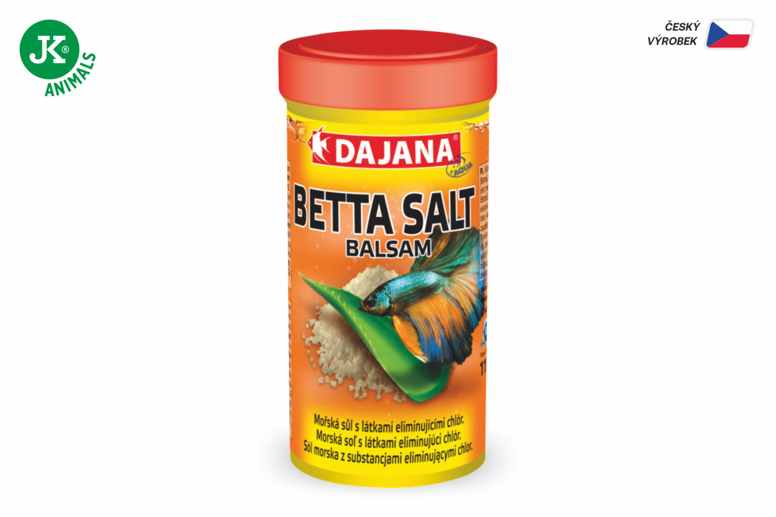 Mořská sůl s látkami eliminujícími chlór. Vřele doporučujeme pro bojovnice (Betta) a také pro živorodky, gavúnky duhovkovité a africké cichlidy. Chlorid sodný je sloučenina nezbytná pro životní funkce většiny organismů. Betta Salt obsahuje sloučeninu, který okamžitě odstraní chlór; obsahuje také výtažek z Aloe vera a beta-glukan, který podporuje hojení ran a regeneraci sliznice a kůže, posiluje imunitní systém, pomáhá předcházet a bojovat s infekcí.