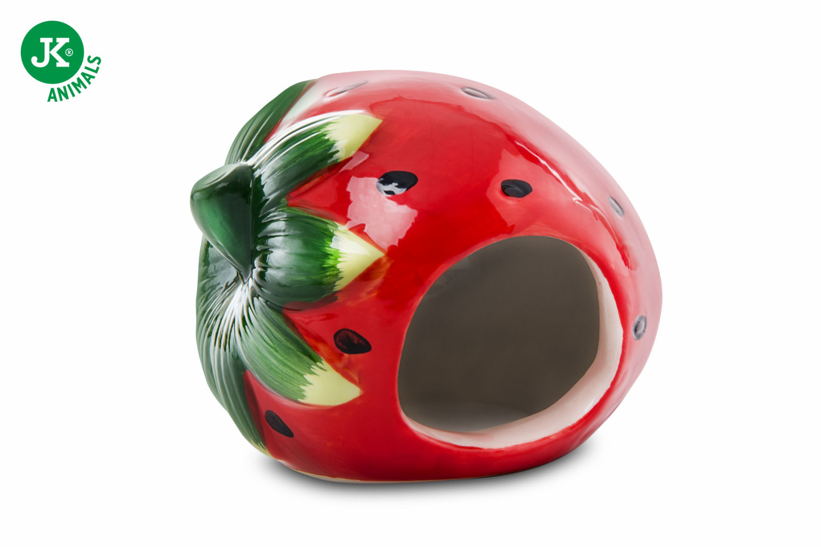 Malý keramický domek pro křečky. Domek ve tvaru jahody je ideální skrýší pro křečky, má pohodlný vstupní otvor. Dopřejte svému hlodavci bezpečné místo k odpočinku.