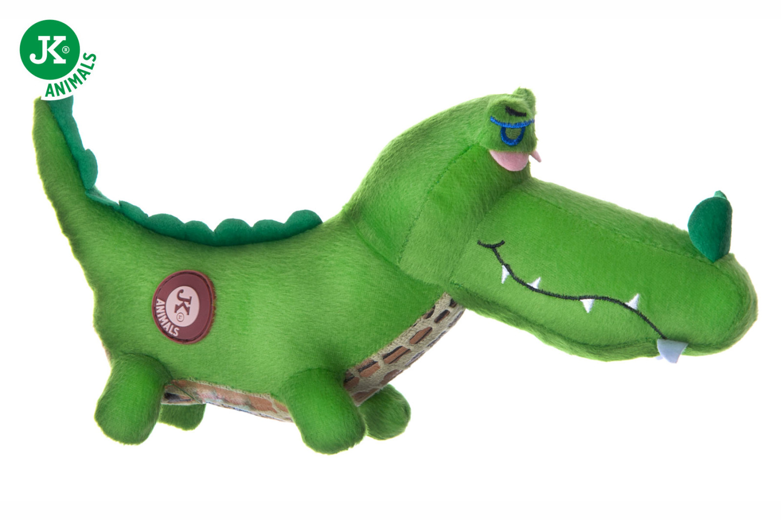 Pískací hračka pro psy z plyše. Hračka ve tvaru krokodýla je vhodná pro použití venku i doma. Ideální hračka pro aktivní hru, skvěle zabaví štěňata i dospělé psy.