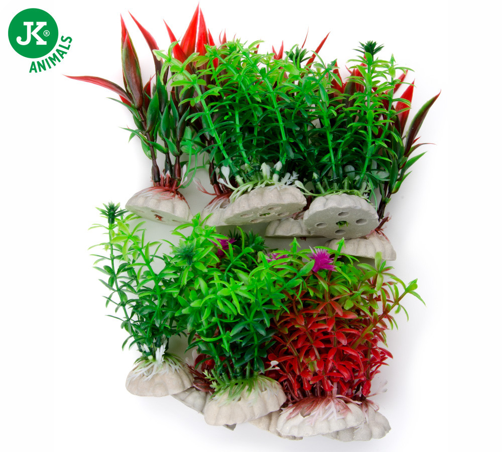 Akvarijní plastové rostlinky s keramickými podstavci. Před umístěním do akvária opláchněte vodou.