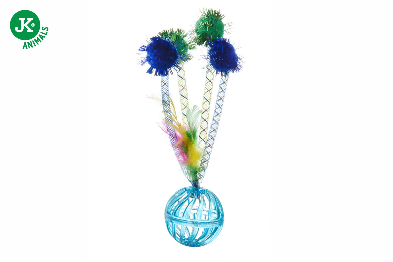 Plastový míček s rolničkou, pírky a balónky. Hračka pro zabavení a aktivní hru s kočkami. Kočka si s myškou pohazuje a skáče za ní, je to nejlepší zábava. Díky zvuku rolničky se stává pro kočku o to zábavnější hračkou.