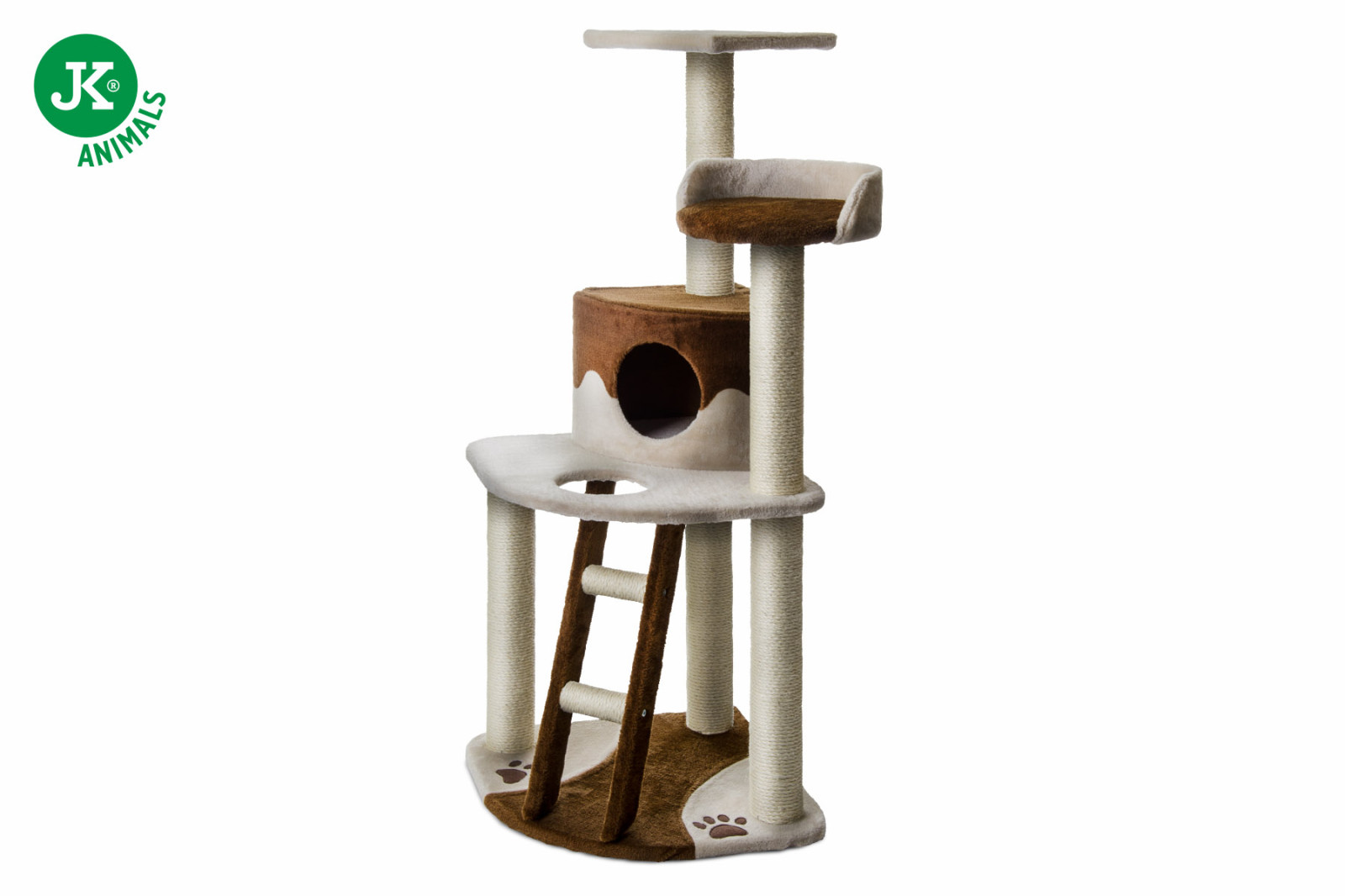 Praktické velké rohové škrabadlo pro kočky žijící v bytě s mnoha zónami odpočinku i aktivit. Toto velké škrabadlo se hodí do domácností i s více kočkami, které si s ním užijí spoustu zábavy. Škrabadlo snadno umístíte do rohu místnosti, kde nezabere příliš místa a dokonale splyne s prostředím. Škrabadlo obsahuje uzavřenou vyvýšenou skrýš, aby se měly kočky kde schovat. Nahoře odpočinkovou plochu pro spaní s pevným okrajem a patro s vyhlídkou. Nechybí ani žebřík pro snadný pohyb do patra. Sloupy jsou potažené odolným přírodním sisalem vhodným pro péči a udržování drápků.
