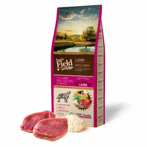 Sam's Field Low Grain Adult Large Lamb - Free Range. Superprémiové bezpšeničné krmivo pro dospělé psy velkých a obřích plemen s vysokým obsahem sušeného jehněčího z volného chovu 26 % a rýže 26 %.