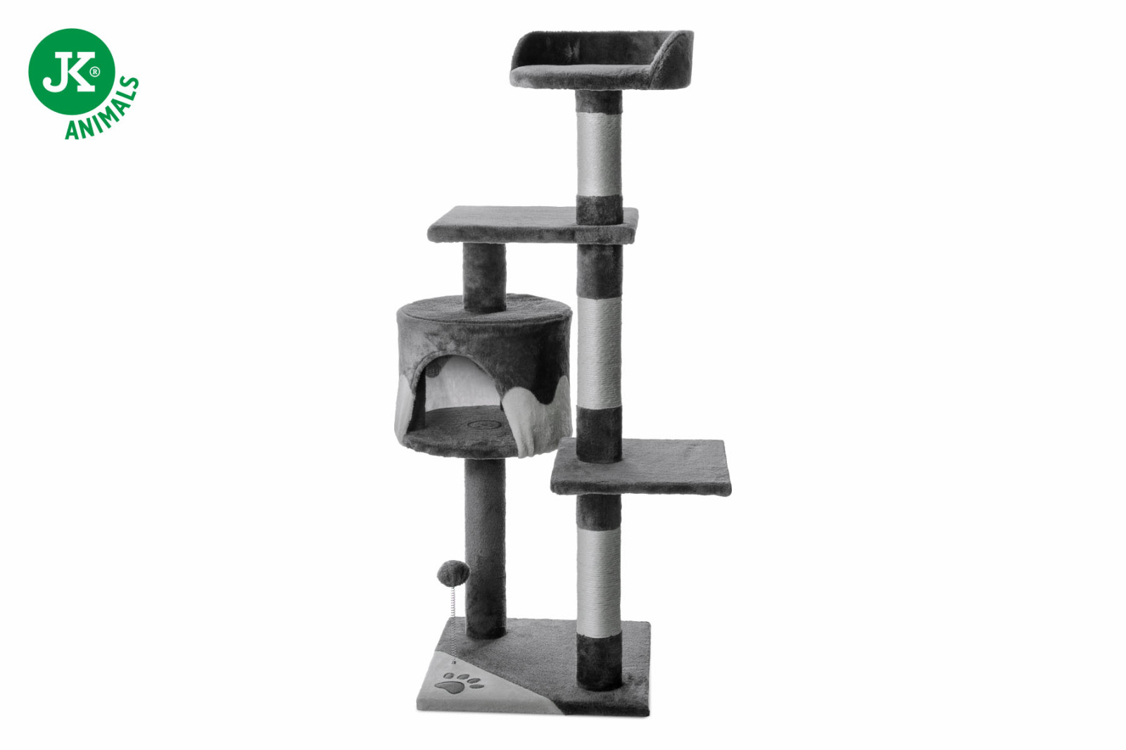 Praktické středně vysoké škrabadlo pro kočky žijící v bytě s mnoha zónami odpočinku i aktivit. Toto středně vysoké škrabadlo se hodí do domácností i s více kočkami, které si s ním užijí spoustu zábavy. Škrabadlo obsahuje uzavřenou vyvýšenou skrýš, aby se měly kočky kde schovat. Zcela nahoře odpočinkovou plochu pro spaní s pevným okrajem a dvě patro s vyhlídkou. Nechybí ani bambule na pružině, se kterou si kočky rády hrají. Sloupy jsou potažené odolným přírodním sisalem vhodným pro péči a udržování drápků.